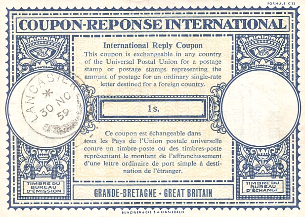 Lo-16n (Crln 23). Office and date of issue: Lancaster 30.11.1959 (Hurtré 30.11.1959) |