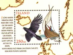 Óđinn (the highest of the Gods) three ravens he intended to use as guides on the way. He paused at the Faroes on the way, where took the time to marrie off one of his daughters before he set sail for the north-west. When he was some way out he released one of the sacred ravens, which promptly headed straight back for the Faroes. Later he released the second of the ravens, which returned to the ship. When he released the third raven, it flew off towards some distantly sensed land far ahead, and now Flóki knew he was on the right way.